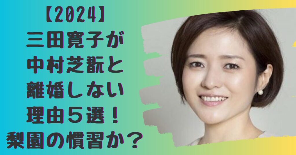 【2024】三田寛子が中村芝翫と離婚しない理由5選!梨園の慣習か?