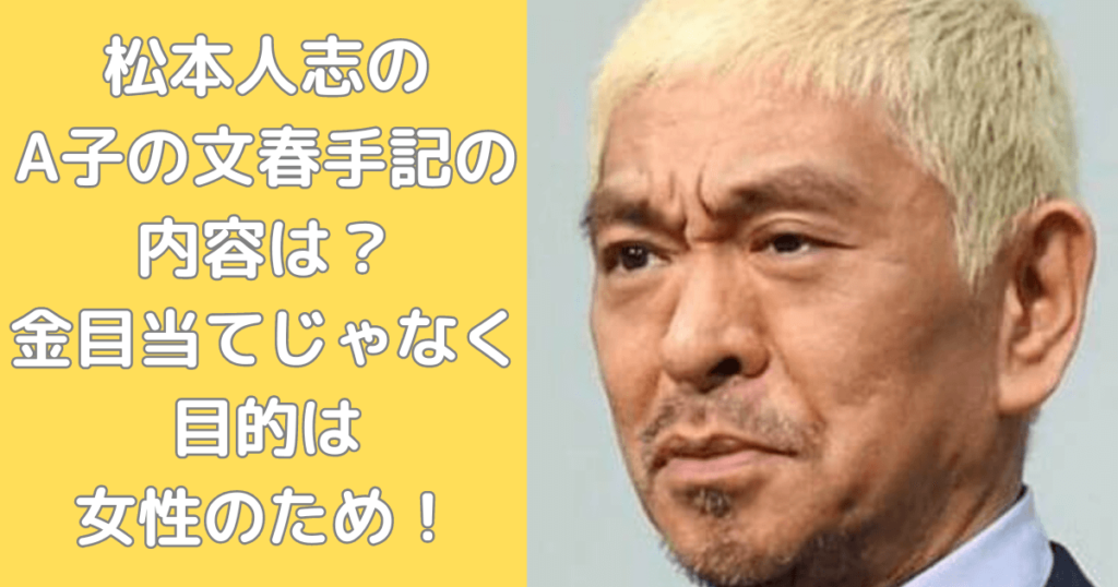 松本人志のA子の文春手記の内容は?金目当てじゃなく目的は女性のため