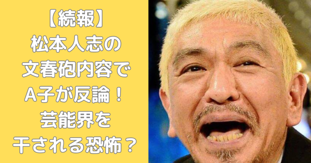 【続報】松本人志の文春砲内容でA子が反論!芸能界を干される恐怖?