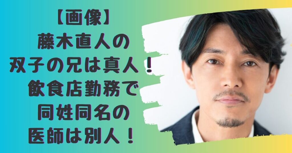 【画像】藤木直人の双子の兄は真人!飲食店勤務で同姓同名の医師は別人!