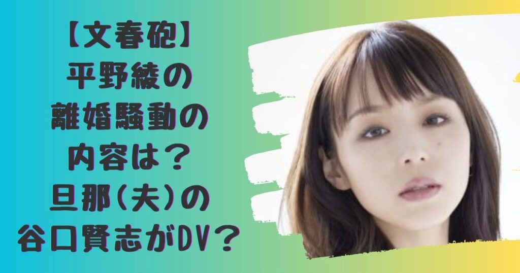 【文春砲】平野綾の離婚騒動の内容は?旦那(夫)の谷口賢志がDV?