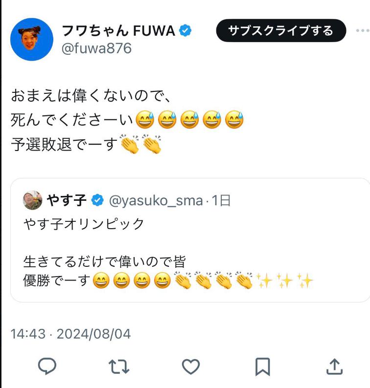 フワちゃんが炎上した投稿は、以下のようなものでした。