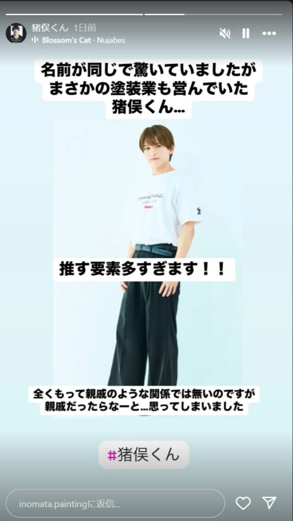 この会社がインスタのストーリーで猪俣さんについてのコメントを出していました。