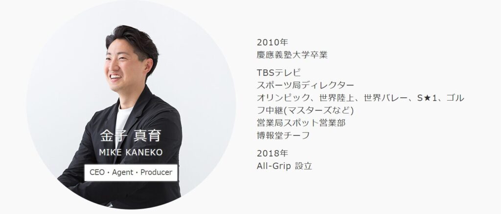 現在はその経験を活かし、2018年にアスリートのマネジメントを手掛ける会社「All-Grip」を設立し、代表取締役社長となっています。