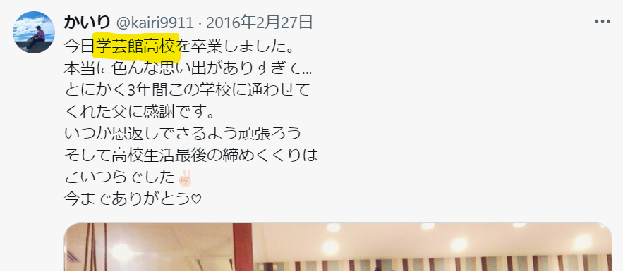 この投稿主の出身高校は、以下のように「岡山学芸館高校」でした。