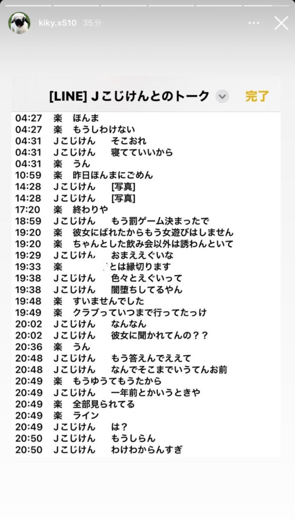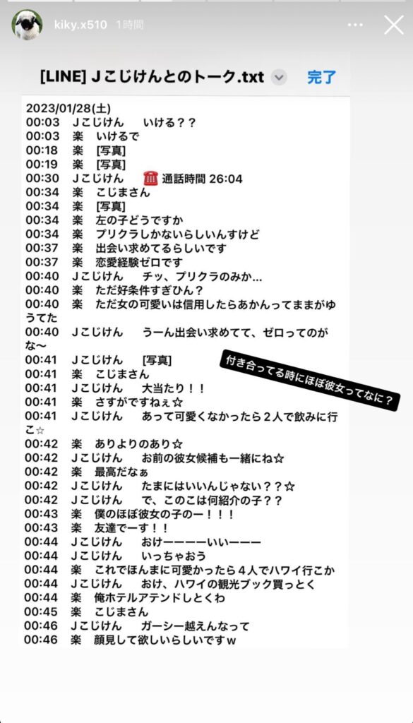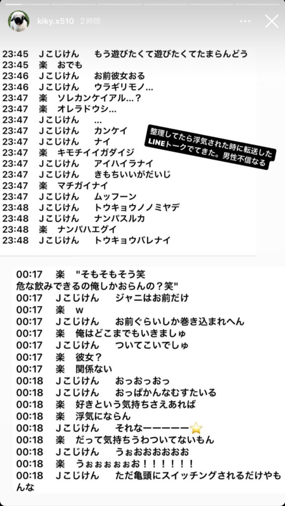 【画像】小島健と河下楽のLINEが流出?女遊びの会話がキモすぎ?