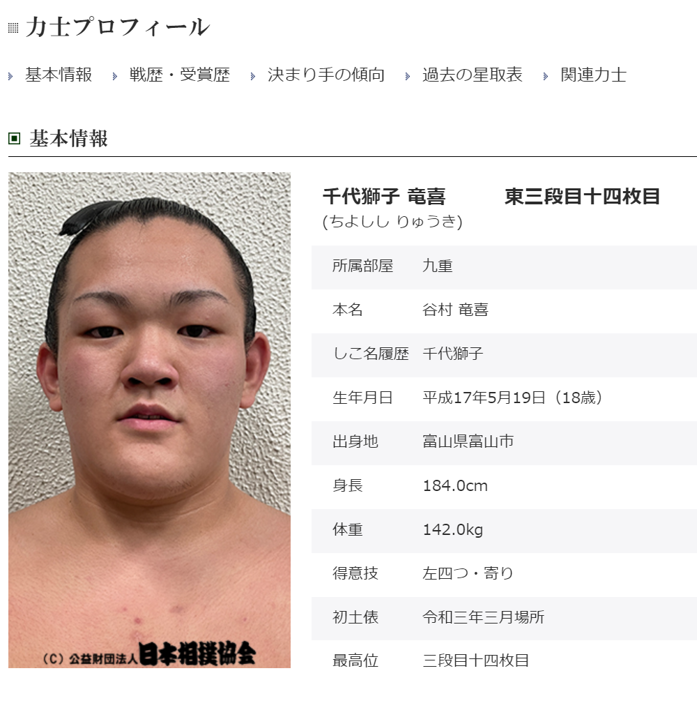 【画像】飲酒は千代獅子(ちよしし)?ホームページから消えたが番付表に名前?