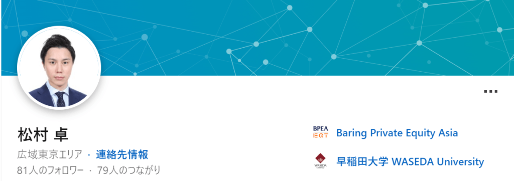 BPEAというアジア最大級のファンドにお勤めで、本名は松村卓さんだということがわかりました。