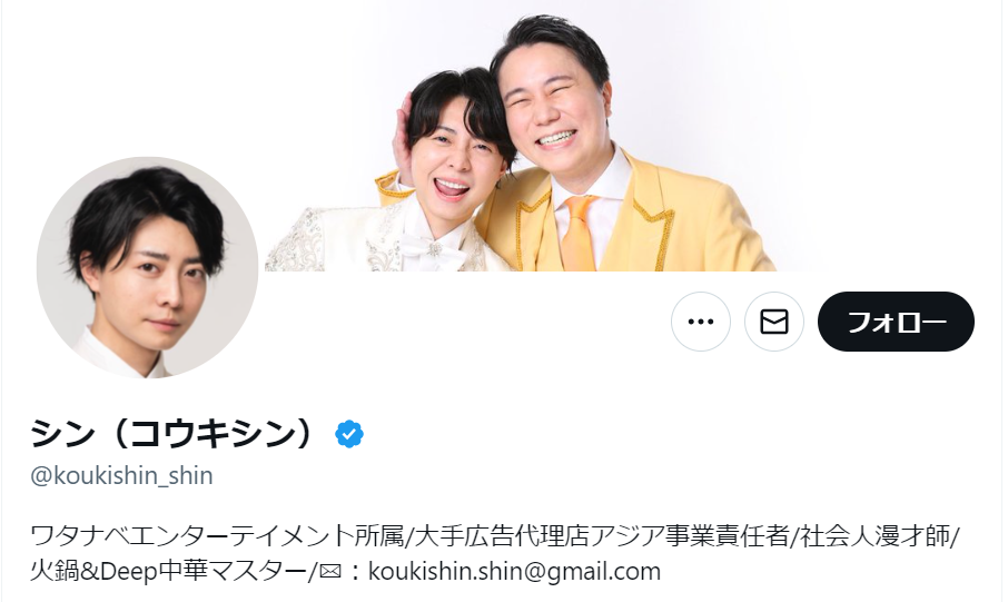 コウキシンのシンのプロフィール!イケメンの中国人芸人!