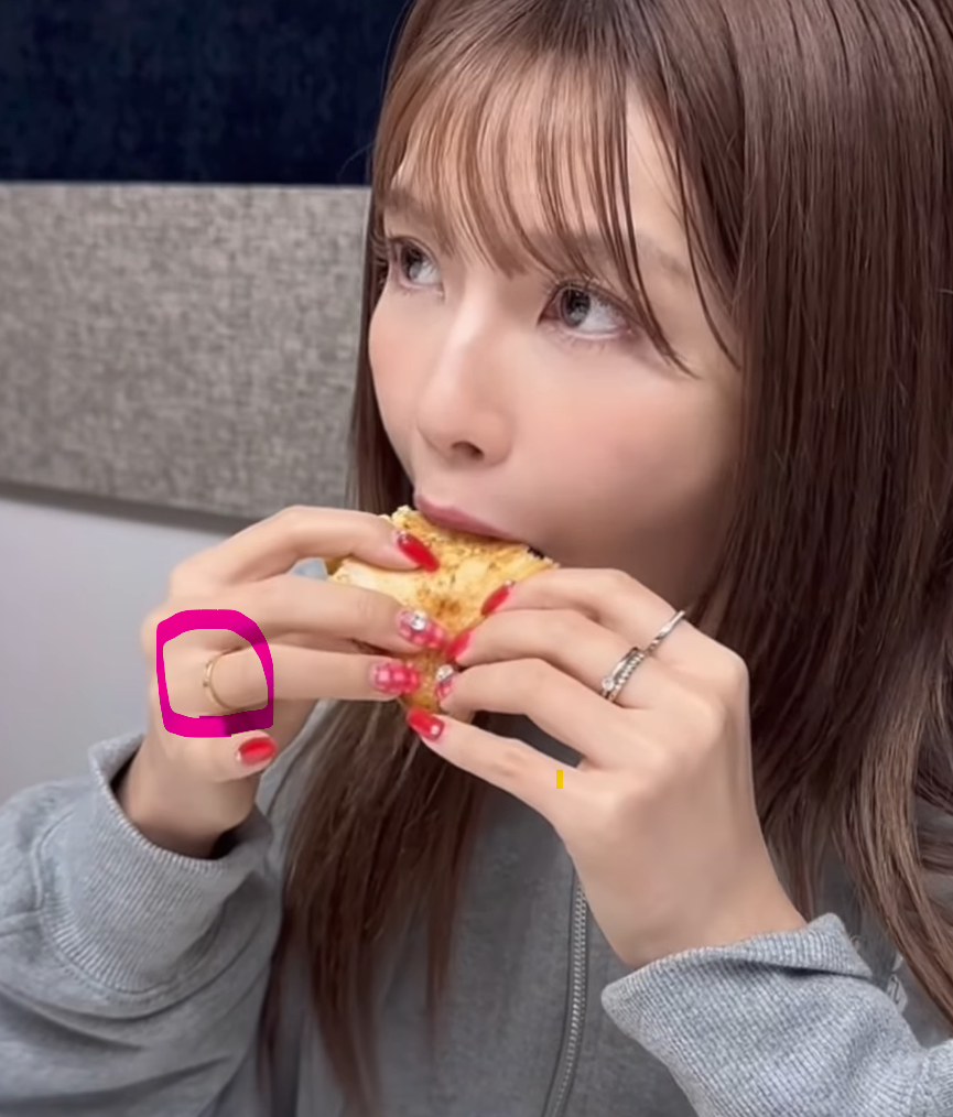 「エンゲージリングが光る」というコメントもありましたが、右手なので何とも言えませんね。