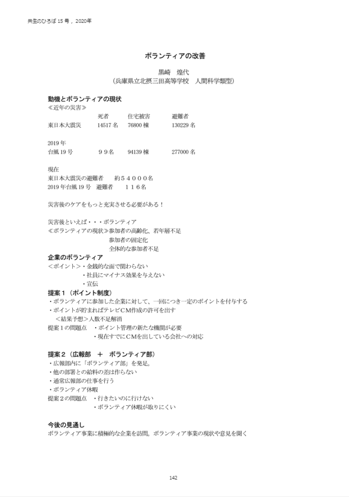 兵庫県立北摂三田高校で、ボランティアについての研究発表をした可能性が高いということが分かりました。