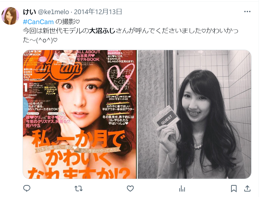 CanCamのモデルや、スピードワゴンの小沢一敬さんとの繋がりなど、とても華やかですね。