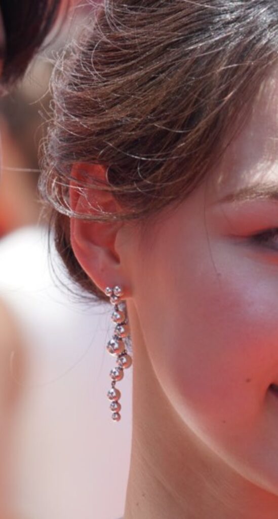 スッキリとしたシンプルなデザインでありながら、歩くたびに揺れる存在感があり、とても素敵なイヤリング(ピアス)ですね。