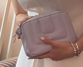 薄いパープルでキルティング加工されている、とても持ちやすそうなバッグですね。
