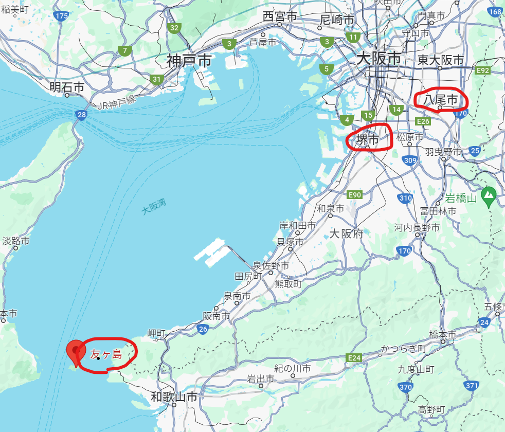 堺市の上空を通って友が島まで向かったということは、八尾空港を利用している可能性が高いですね。