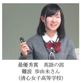 受賞歴:第五回高校生プレゼンテーションコンテスト 最優秀賞受賞、県知事杯英語スピーチコンテスト 特別賞受賞