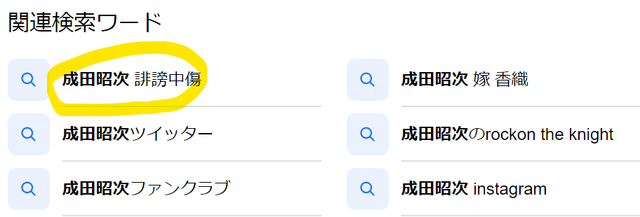 そんな、成田さんを名前で検索すると「誹謗中傷」というサジェストが上がってくるのが気になりますね。