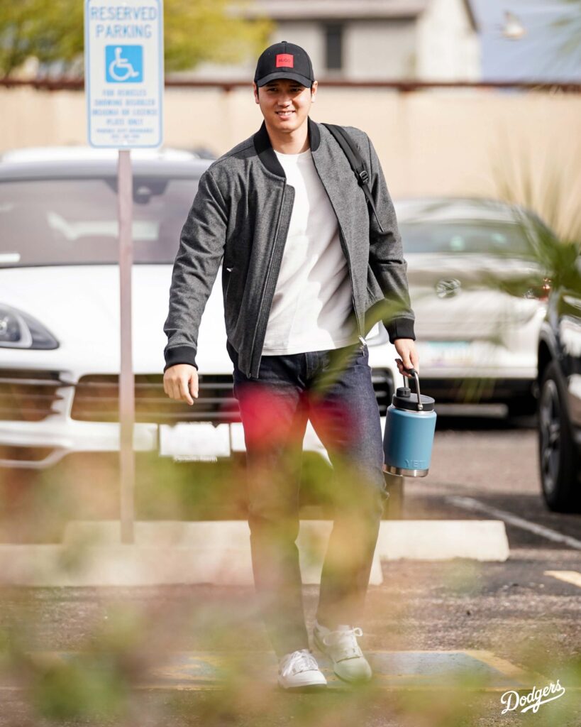 米アリゾナ州グレンデールの球団施設に入る様子を写した写真は、白Tシャツにグレーのジャンパーにジーンズのカジュアルスタイルでした。
