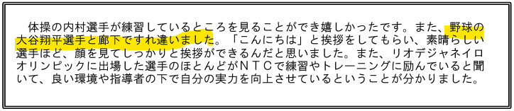 コチラは「未来のアスリート発掘事業」の一環で行われた、同施設を視察した児童の感想文です。