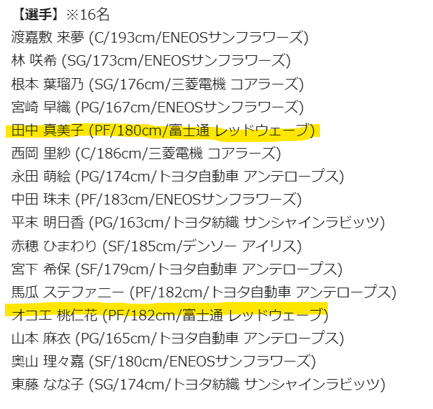 以下は、「2021年度バスケットボール女子日本代表チーム『FIBA 女子アジアカップ2021(ヨルダン)』日本代表候補選手の第8次強化合宿」のリストです。