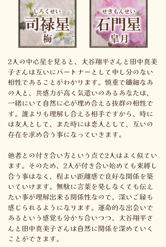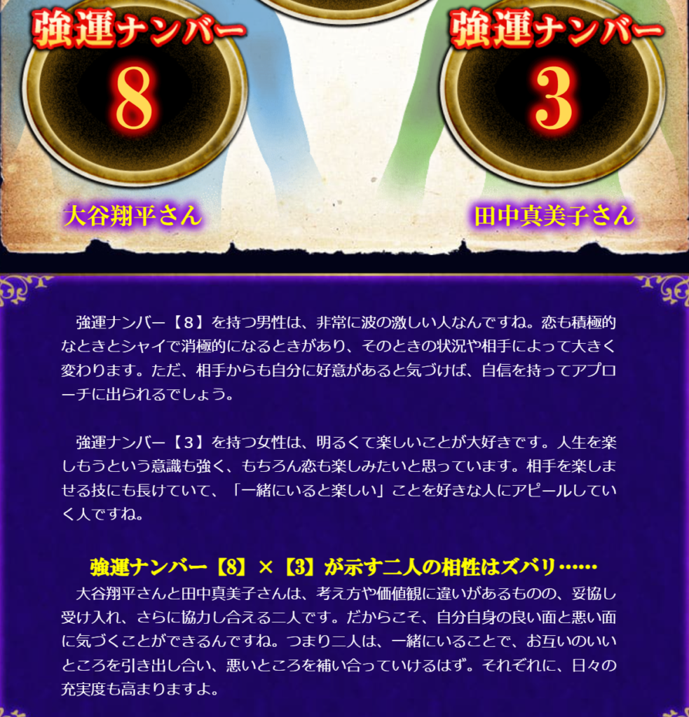 今回は、大谷翔平選手と田中真美子さんが結婚していたとしたら…ということで2人の相性占いをしてみました。