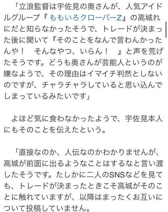 高城れにさんと宇佐美真吾選手の結婚について、良く思っていなかった人がいるというのです。