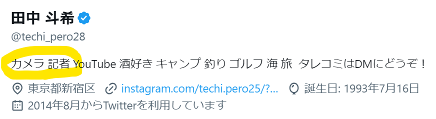 上記は、田中斗希さんご本人のX(旧Twitter)のプロフィールです。