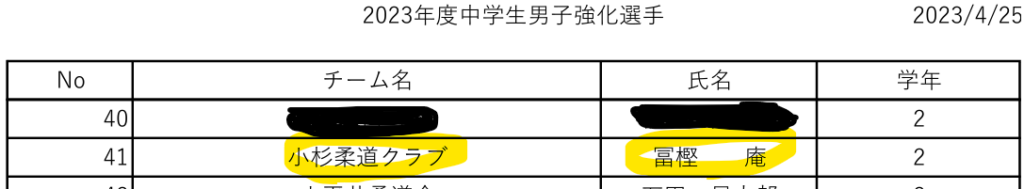 調べてみると、東京都の「2023年度中学生男子強化選手」に選ばれていました。