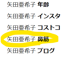 鼻の手術ということで、「矢田亜希子 エンリケ 鼻筋」が結びついて、「矢田亜希子 鼻筋」になっていったのではないでしょうか?